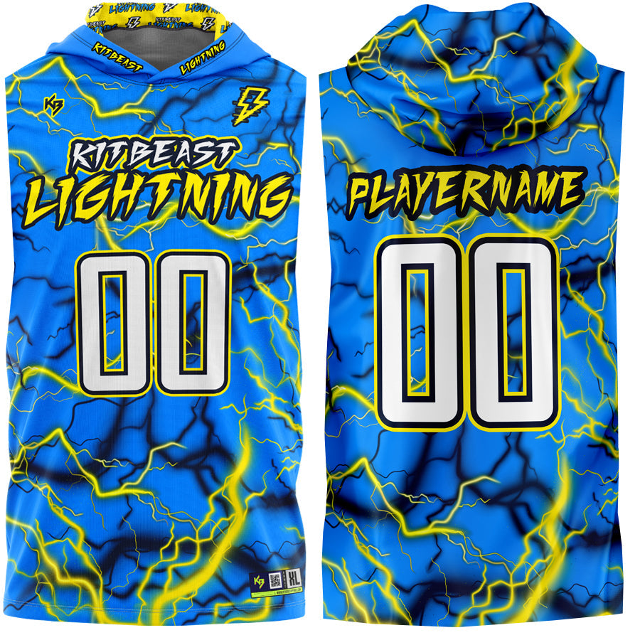 Represent you and your team in style with the KitBeast Lightning Performance Compression Hooded Flag Football Jerseys! Designed and manufactured exactly the way you want!