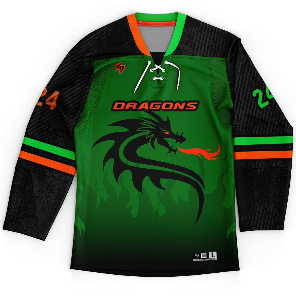 Represent you and your team in style with the KitBeast Dragons Performance Custom Ice Hockey Jersey! Designed and manufactured exactly the way you want!