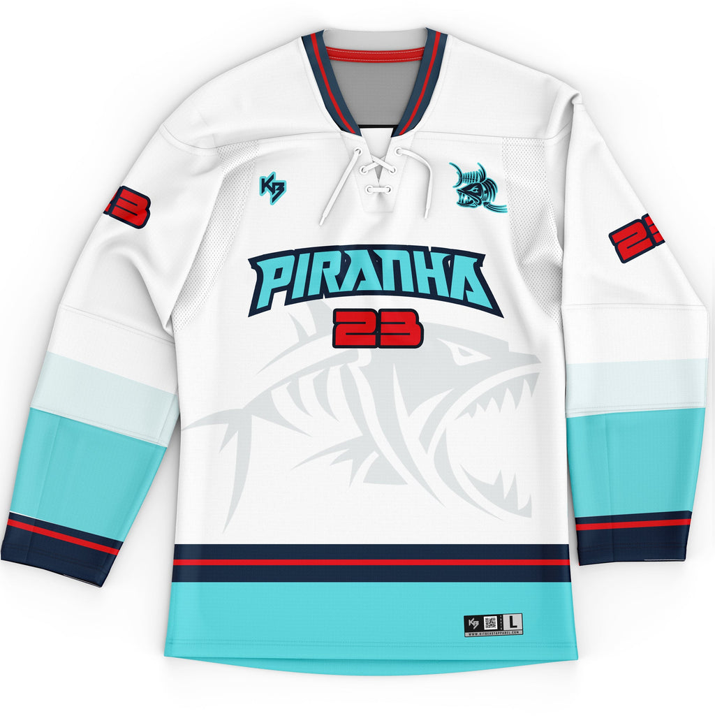 Represent you and your team in style with the KitBeast Piranha Performance Custom Ice Hockey Jersey! Designed and manufactured exactly the way you want!