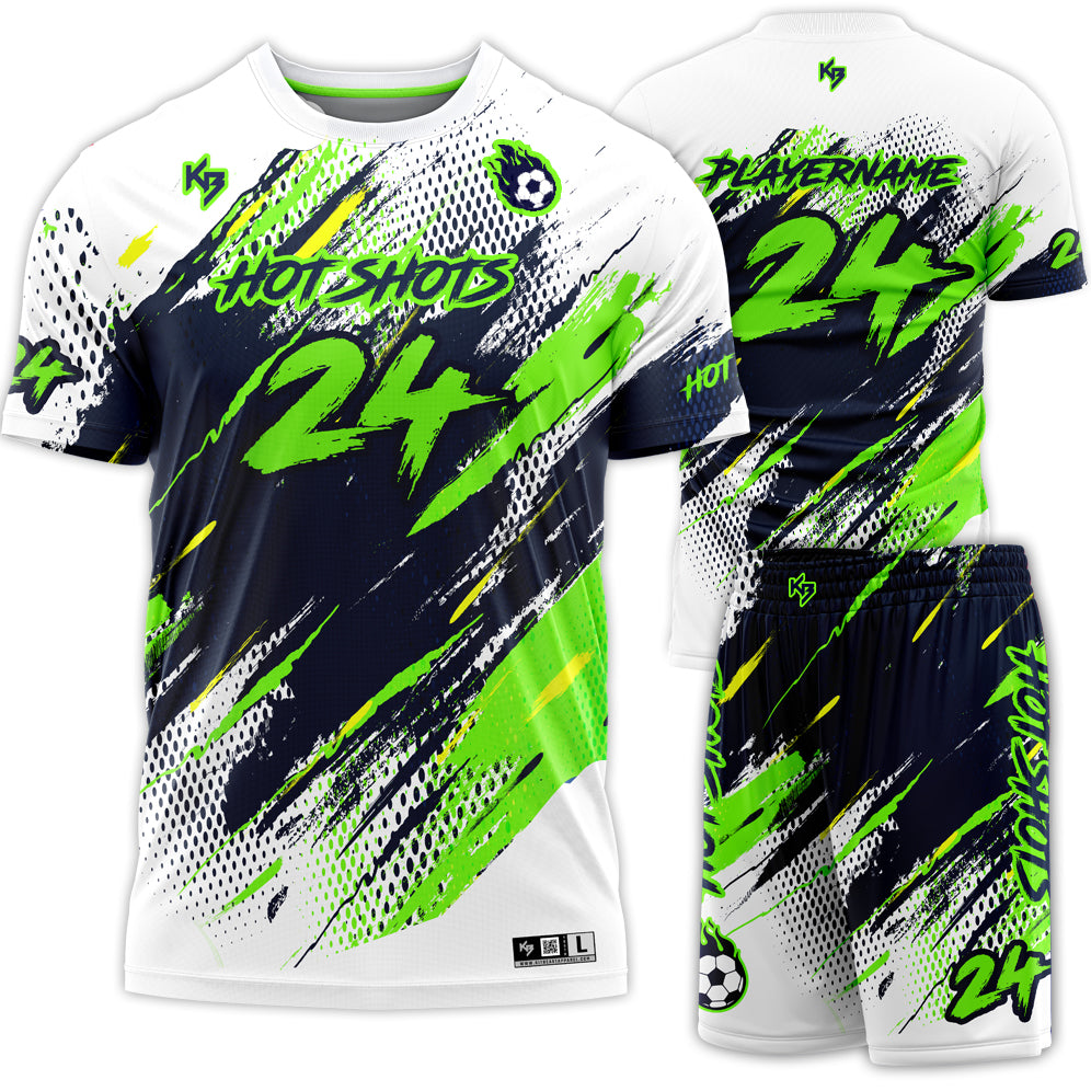 Represent you and your team in style with the KitBeast Hot Shots Performance Soccer Kit! Designed and manufactured exactly the way you want!