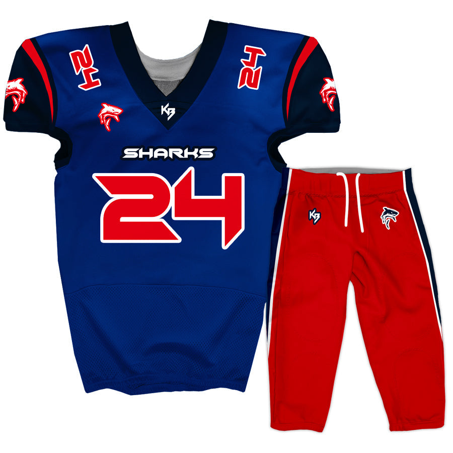 Represent you and your team in style with the KitBeast Admirals Tackle Football Jerseys! Designed and manufactured exactly the way you want! Full Tackle Football Uniforms also Available in same design.
